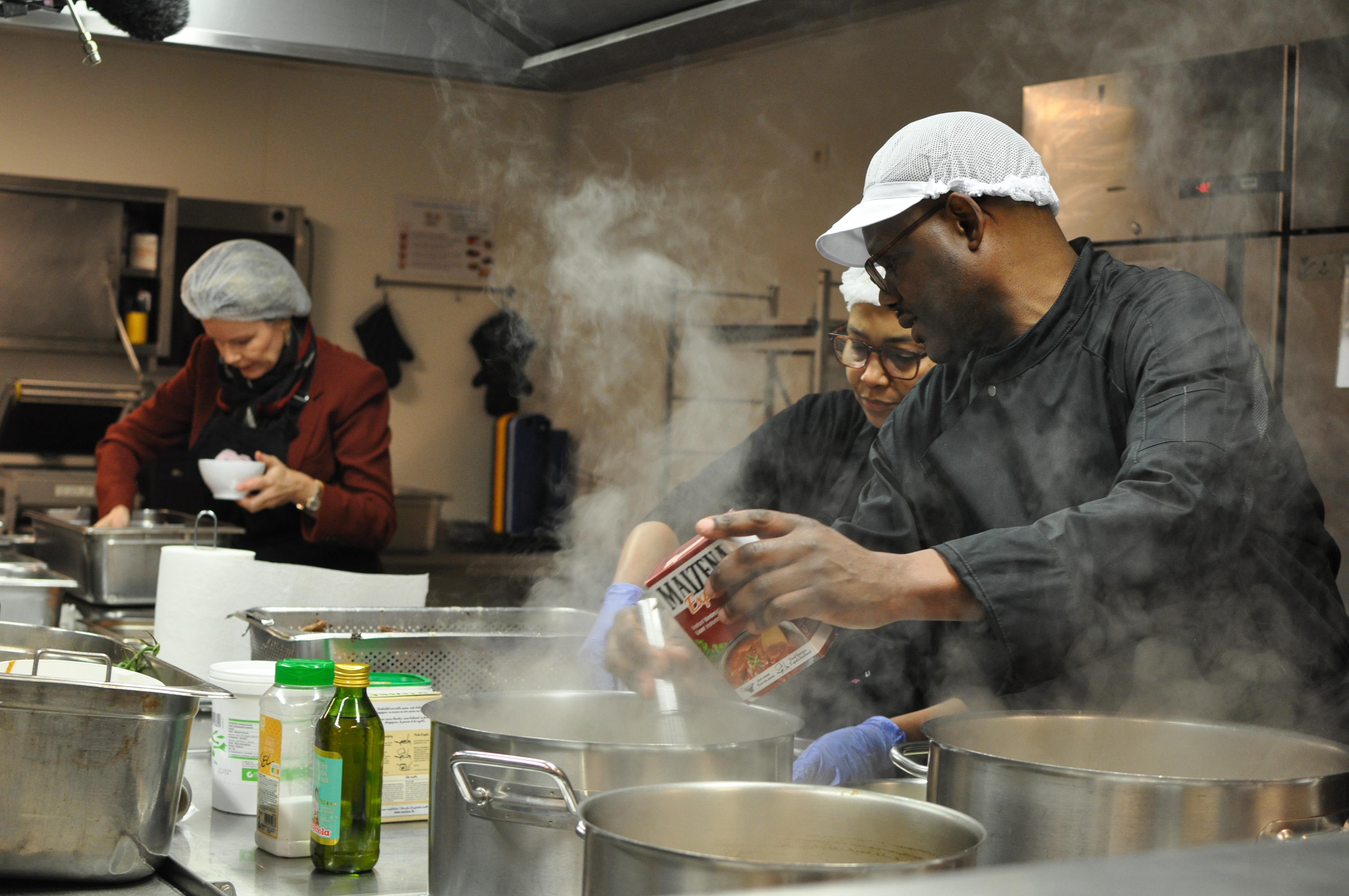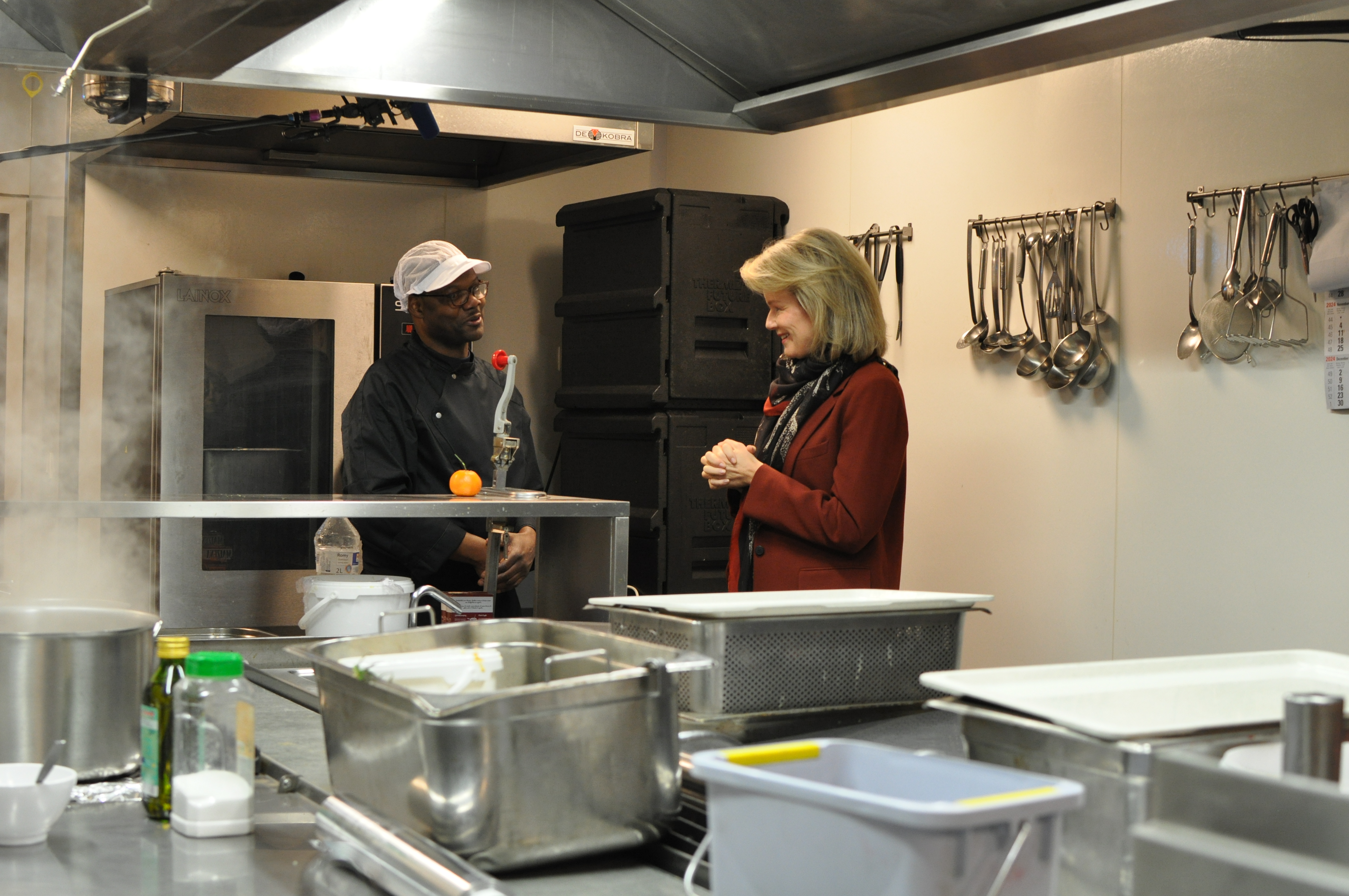 Uitdeling van warme maaltijden van 11u tot 12u45, van maandag tot vrijdag. Het tarief van de maaltijden wordt per persoon vastgelegd.